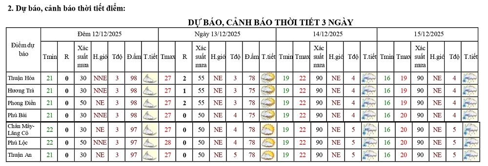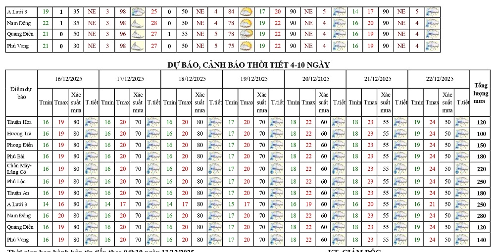 Bản tin dự báo thời tiết ngày 13/12/2025 và 10 ngày tiếp theo