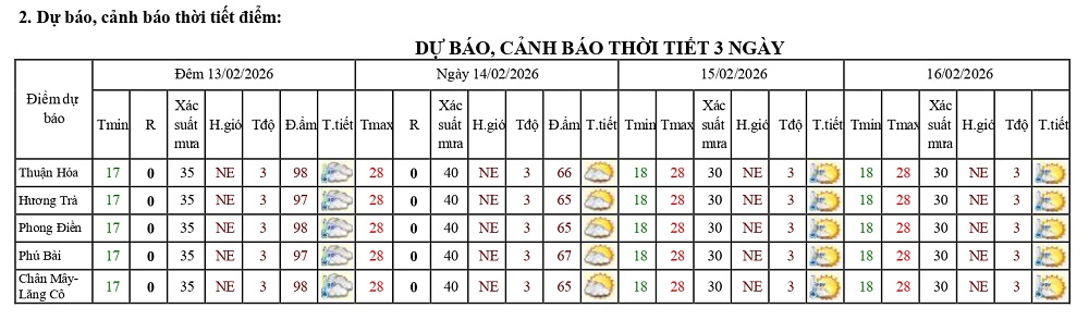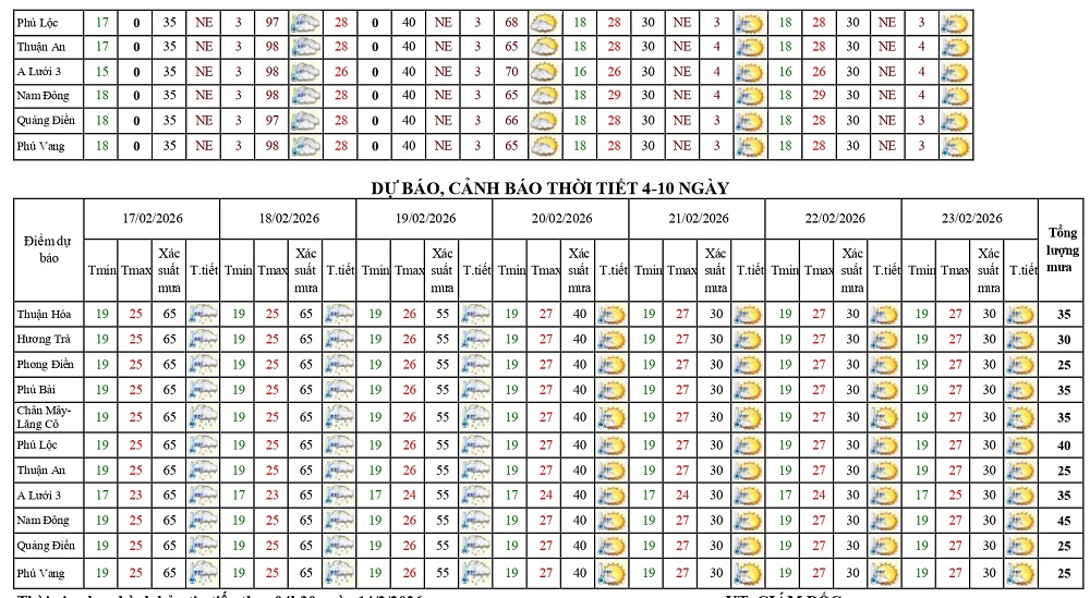 Bản tin dự báo thời tiết ngày 14/02/2026 và 10 ngày tiếp theo