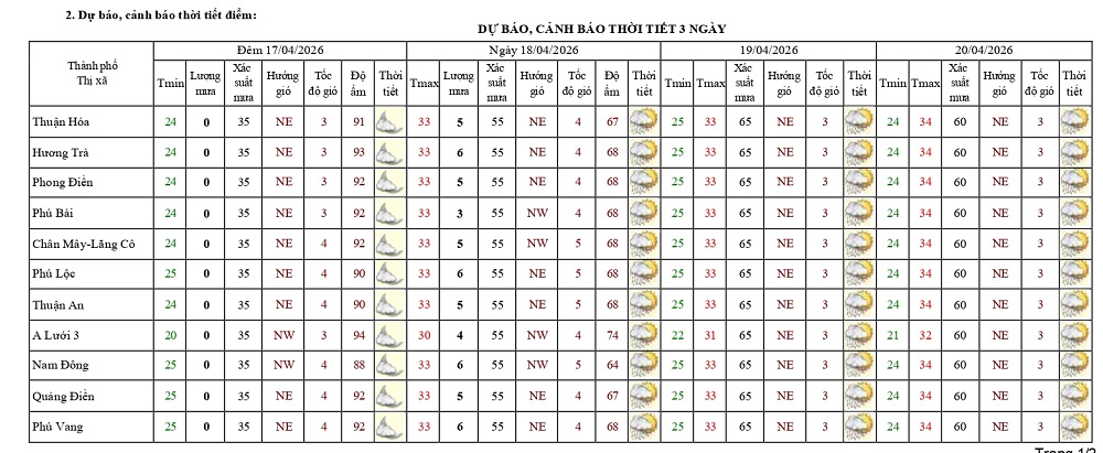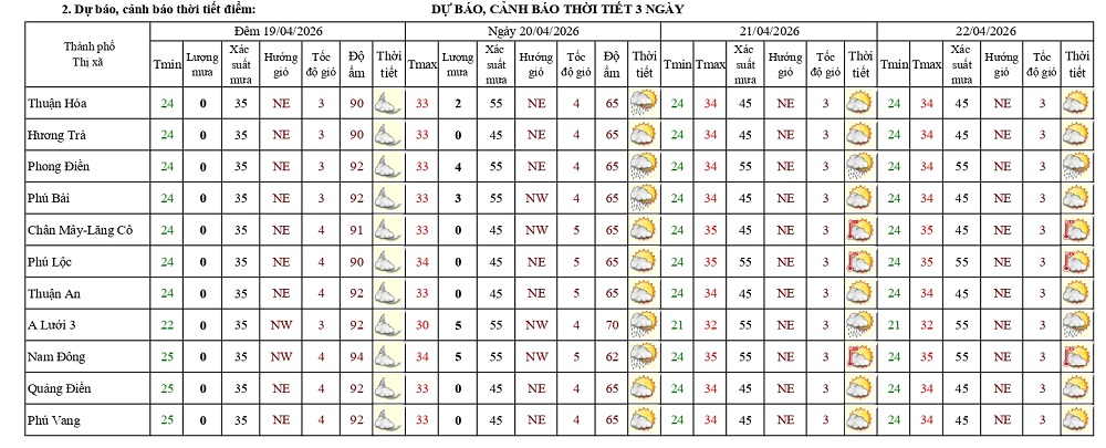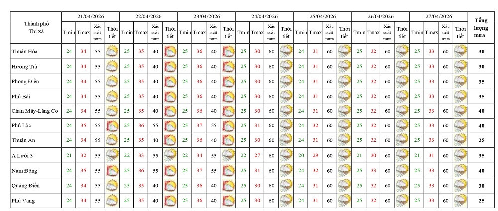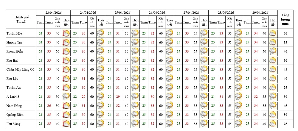 Bản tin dự báo thời tiết ngày 20/4/2026 và 10 ngày tiếp theo